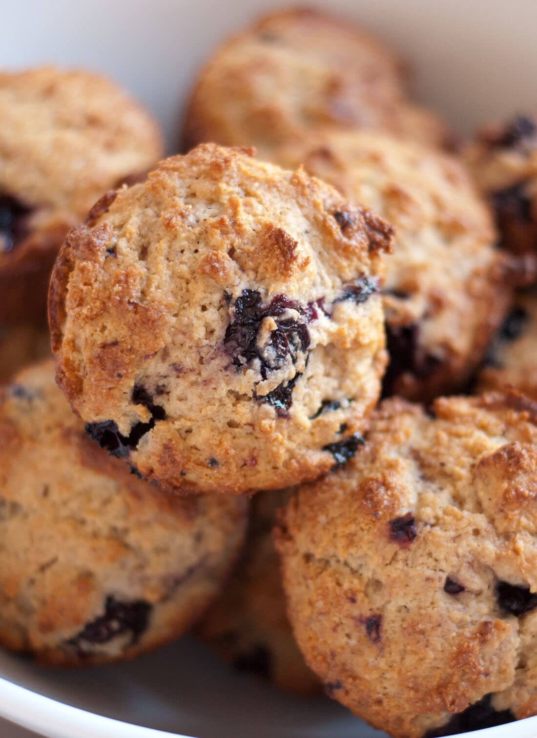 These blueberry muffins are made with whole wheat flour and Greek yogurt. So delicious, no one will guess they're wholesome, too!