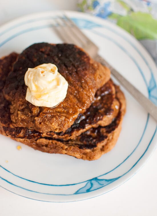I really wanted to revisit this gingerbread pancakes recipe that I published almost four years ago exactly. It’s one of my favorites. I’ve just been reticent to promote these pancakes because they looked like unappetizing brown blobs in the old photos. Here are some better photos to do them justice, along with a revised recipe that meets my post-cookbook recipe-writing standards. I also added special diet notes, so these should work if you’re vegan and/or gluten free.
